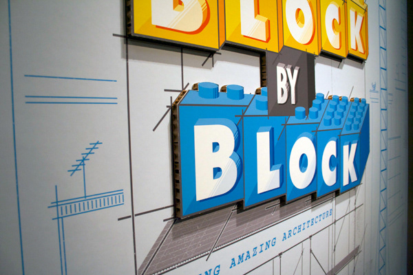 The chief design inspiration pulled heavily from the world of architecture, particularly blueprints and the title blocks of information that appear on them. We sought to push this notion in the graphics and identity as a way of making the exhibit inclusive to a wider array of potential visitors, from the families who will bring their children due to the connection with Lego, to those who can appreciate the buildings for their engineering and basis in architecture. The linework on the building display decks, walls (hand drawn by me) and citations pulled from the hand-drawn element of architecture plans while adding a layer of child-like simplification of complex forms like cranes, scaffolding and skylines.