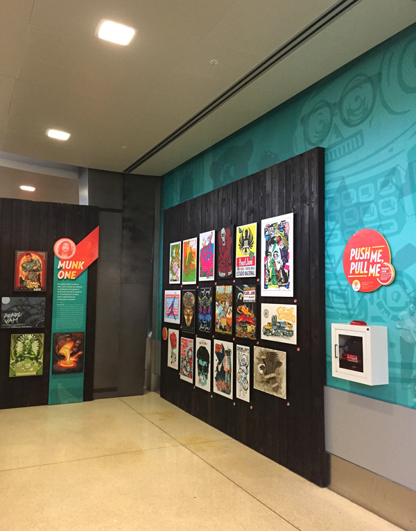 In May 2015, EMP Museum, in collaboration with Pearl Jam Ten Club and Ames Bros, opened a screen printed poster exhibit at Seattle-Tacoma International Airport (Seatac). Push Me, Pull Me: Pearl Jam and the Art of the Screen Printed Poster displays 85 posters by over 30 different artists in the A Concourse of Seatac. The exhibit celebrates the collaborative and creative output of the band and the artist that promote their shows, showcasing poster art over a 20 year period.