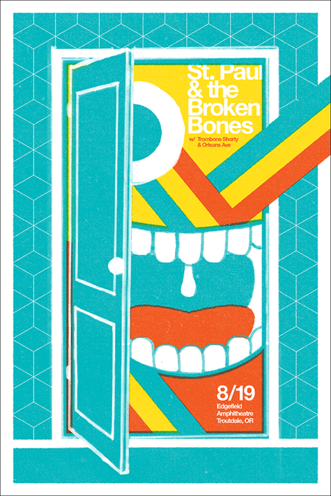 3-color screenprint on 100lb. Cougar Opaque White. 15” x 18”.
